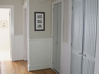 - Ретро стилизацията се завръща на мода. Това са хоризонтални ламели на крилата на вратите, подобни на съвременните щори. Такива модели бяха популярни през 60 -те години на миналия век, а сега успешно украсяват малки зали..