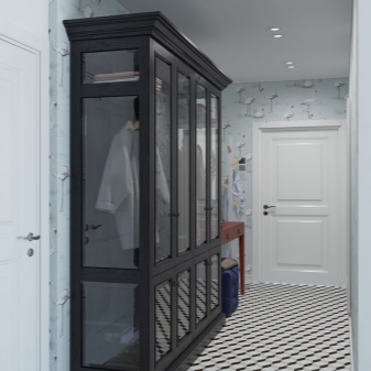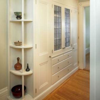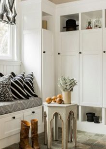 - В един скромен коридор гардеробът може да се превърне в единствената мебел и следователно едновременно да служи като декоративен елемент и място за съхранение на дрехи. В този случай дизайнът на мебелите може да бъде избран ярък и изразителен..