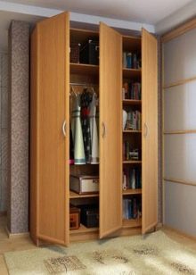 Според този принцип гардеробите са разделени на гардероби и спално бельо. Ако имате нужда от място, където да съхранявате връхните си дрехи на закачалки, трябва да обърнете внимание на гардероба. Побира много закачалки, а напротив, има малко рафтове. Ако основната част от дрехите ще се съхранява на рафтовете, тогава е по -добре да изберете гардероб за спално бельо. Има две, трилистни и четирилистни версии на съблекални.