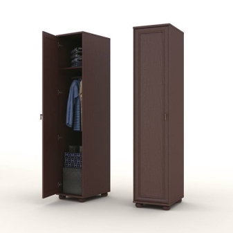 Гардероб с една врата най-често се поставя в малки стаи, тъй като има скромни размери. Такава мебел има само люлеещ се отвор. Нарича се още пътна чанта или молив. Тук се съхранява минималният комплект дрехи за всеки ден. Оборудван е с малък брой рафтове и закачалка.