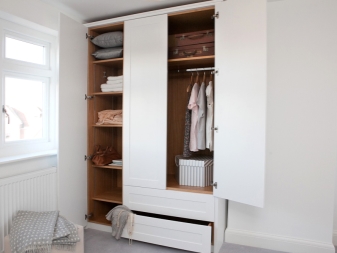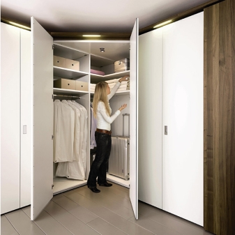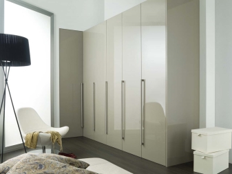 - Броят на вратите се определя от броя на секциите. Серийните модели имат следните параметри: 2-3 крила и ширина 1-2,4 m. В такъв килер има достатъчен брой неща, които могат да бъдат поставени на рафтовете в два реда, а в отделението за съхранение могат да се претеглят дрехите на почти всички членове на семейството;
