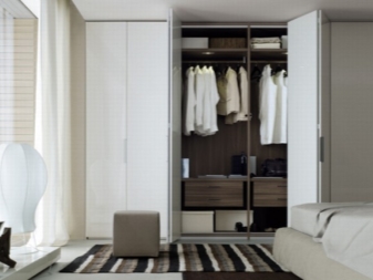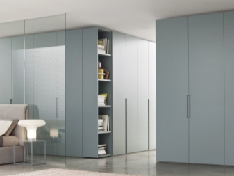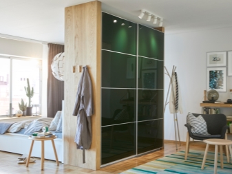 Много интересно решение е двустранният гардероб., които могат да се отварят както отпред, така и отзад. Този дизайн се използва като вид преграда за зониране на пространството