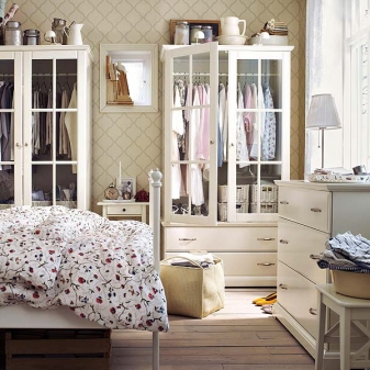 Когато избирате гардероб в етнически стил (било то Прованс, руски стил, японски, кънтри), трябва внимателно да обмислите как този артикул ще се впише в околната среда, дали ще бъде в хармония с него. Може би след появата на такъв шкаф ще е необходимо да добавите някои етнически детайли към интериора (завеси, лампи, покривки за легло).