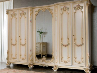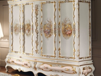 - Мебели рококо по -малко помпозен, макар и изпълнен с детайли и лукс. Но този лукс е по -малко тежък. Гардеробите в стил рококо изглеждат по -ефирни и леки, благодарение на по -елегантен декор, преобладаване на светли цветове. Мебелните продукти в този стил изглеждат страхотно в свободни пространства, които не са претоварени с други мебели..