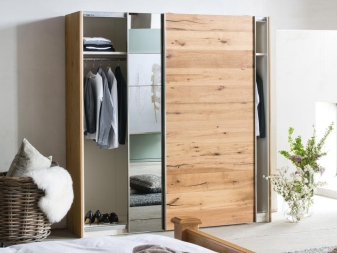 Класическият гардероб е изработен от масивно дърво. Това е най -надеждният и издръжлив материал, но цената на такава мебел ще бъде по -скъпа.. Дървен шкаф има елегантен и луксозен вид и е по -подходящ за интериори в класически стил, стил Прованс или хижа.