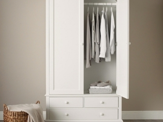 - Просторност. Шкафът трябва да побира възможно най -много различни видове дрехи. И за това в него трябва да бъдат предвидени рафтове, чекмеджета и щанга за закачалки;