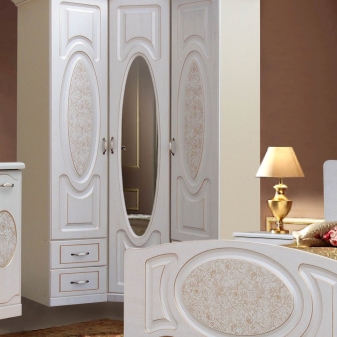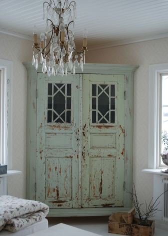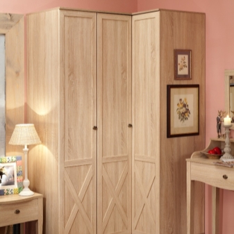 Ъглов шкаф в стила на френско село е чудесно решение за интериора на малка стая. Добре е всички останали мебели и декор да са в същия стил..