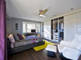 - Ако според идеята на собствениците гардеробът заема централно място в стаята, тогава първо избират гардероб, а след това подбират материали за довършване на стените, тавана, пода на мебелите, текстила за него. Ако, напротив, шкафът трябва да стане по -малко забележима част от интериора, тогава цветът му трябва да е близък до цвета на стените;