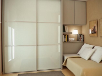 Местоположението има значение. Най -удобният вариант за поставяне на шкафа е между две стени. По този начин пространството на стаята се използва най -ефективно. Ако вратата е в центъра на къса стена, тогава можете да опитате да инсталирате два шкафа от двете страни на нея. И окачете мецанин над вратата. Ще се окаже един вид портал.