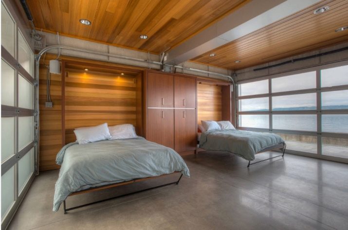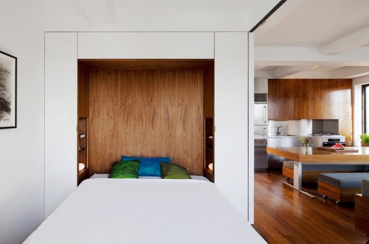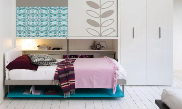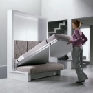 Особеността на това обзавеждане се състои в простата схема на “прераждане”. На външен вид обикновено легло е оборудвано със специален механизъм, който му позволява да се трансформира в напълно различен тип мебели – гардероб.