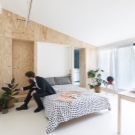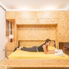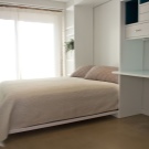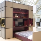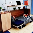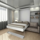 Ако в определен момент имате нужда от работна повърхност на трансформатора – гардероб, тогава леглото се „вкарва“ под него. И когато дойде време за сън, леглото отново се изплъзва и има място за спане. А шкафът от своя страна се „забива“ в освободеното пространство, специално проектирано от структурата.
