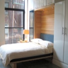 - Няма проблеми при почистване на апартамента, тъй като структурата на трансформатора на гардероба и леглото лесно се издига и осигурява свободен достъп до пода.