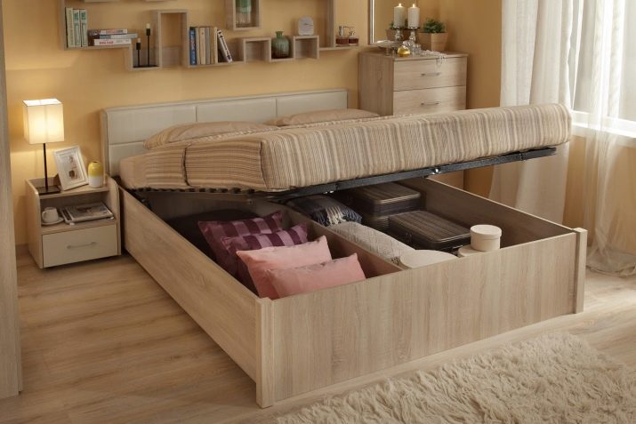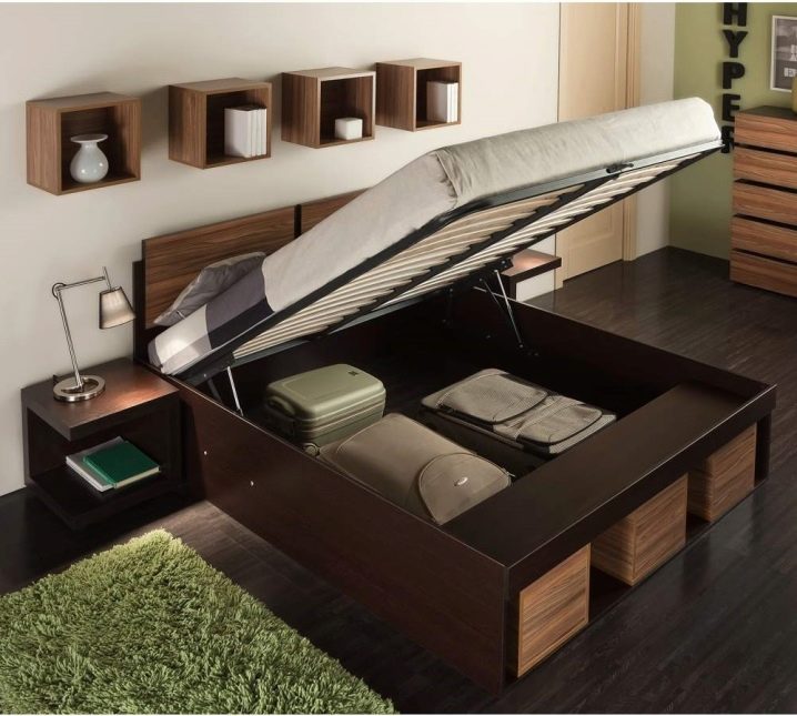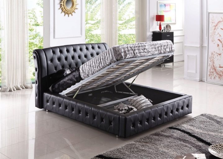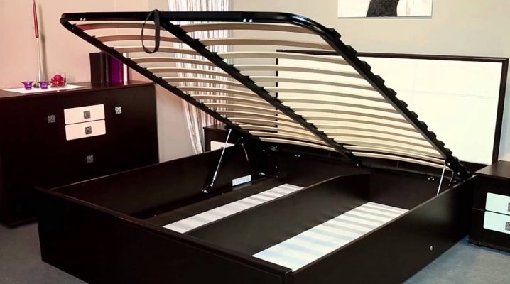 Леглото е не само рамка, но и допълнително място за съхранение.. Често тази функция се осигурява от вътрешни чекмеджета, които са покрити с поддържаща повърхност, върху която е разположен матракът. Достъпът до тези елементи е доста труден, тъй като има много тежест, която трябва да се вдигне. За да опростите тази процедура, можете да използвате газов асансьор за леглото. Тези устройства са предназначени за прехвърляне на налягането на газа към рамката на тялото.