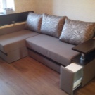 - “Делфин”. Този дизайн е един от най -често срещаните в ъглови дивани. Вътрешното тяло е скрито директно под самата седалка. Ако е необходимо да се оформи легло, то се издърпва и повдига върху специални метални опори. Целият процес е напълно механизиран и изисква минимални усилия. Такива системи са много икономични, тъй като не заемат много място. Експертите препоръчват да се използват за малки пространства..