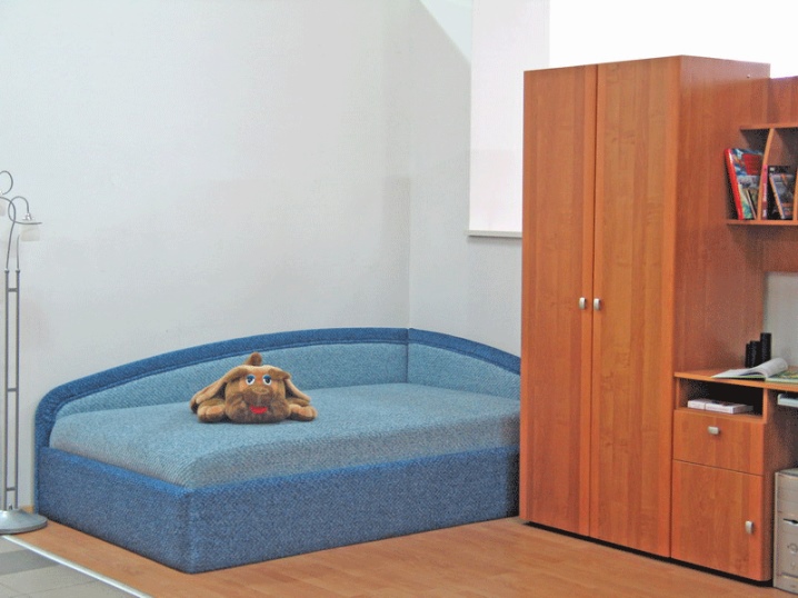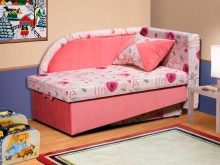 - Деца. Ъгловите дивани с малки размери често се използват в детската стая. Този модел може да бъде направен под формата на голяма играчка, която със сигурност ще зарадва всяко дете. Вярно е, че децата растат твърде бързо и скоро ще трябва да потърсят тийнейджърско легло. Материалите за детски модели трябва да са безопасни, хипоалергенни.