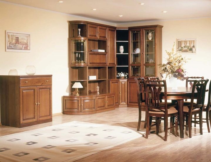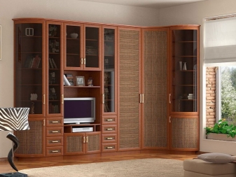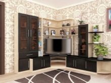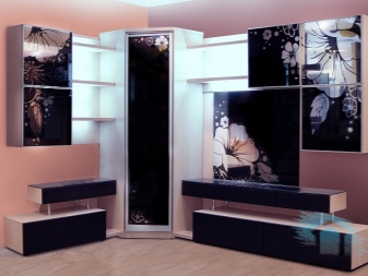 - Функционалност. Този параметър е доста важен при избора на мебели. Съвременните ъглови стени могат да се състоят от разнообразни рафтове, ниши, гардероби, витрини за сувенири.