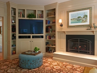 - С витрини. В стената на залата хората пазят реликви, фотографии, предмети от декора. Това ще помогне да придадете на стаята си индивидуалност и оригиналност..
