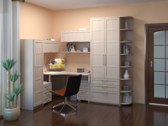 Тази опция е забележителна с факта, че всяка област на стената може да бъде заменена по всяко време. По този начин шкафове, нощни шкафчета, окачени рафтове и други елементи могат успешно да съществуват независимо един от друг. Корпусните мебели могат да имат различни рафтове за дрехи и неща. Тази опция е идеална за студент..