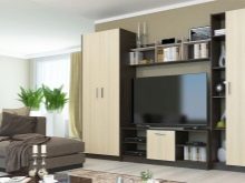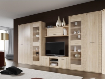 - С телевизионна ниша. Ще можете да поставите уреди в дълбините на цялата мебелна композиция. Също така, продуктът ще се превърне в надеждна защита за вашето оборудване. Единственият възможен недостатък е, че ще отнеме много място..
