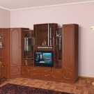 - Злато. Тази местна компания произвежда много съвременни модели. Сред тях са Рондо. Тази ъглова стена има ярки декоративни елементи и в същото време строг дизайн. Има подсветка. Телевизорът може удобно да се постави на нощното шкафче. Комплектът включва гардероб, бюфет, витрини, рафтове, чекмеджета. Цялата конструкция е от MDF, тялото е от ламинирано ПДЧ. Цената на този модел е доста висока, докато качеството е на висота..