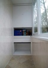 Вариантите на ролетни щори са подходящи и за балкони. Тези модели имат голям капацитет, помагат да се спести място. Алуминиевите врати предпазват интериора на мебелите от изгарящото слънце, прах, влага. Техните предимства включват и факта, че ролетните щори могат лесно да се монтират и не се изисква допълнително пространство при повдигане. Отварянето на шкафа е много лесно и на всяка височина. Предимствата включват лекота на грижа за продукта, лекота на почистване.