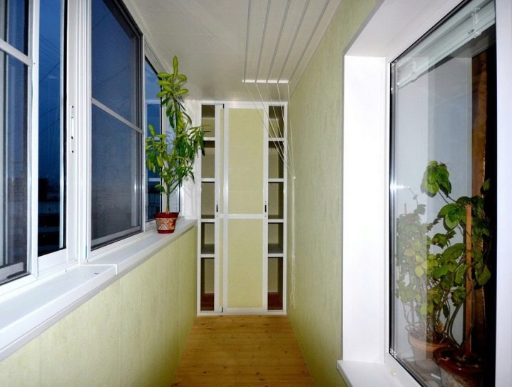 Тези продукти са направени от пода до тавана. Такъв модел ще бъде добър помощник при съхранение на неща. Мебелите ще се впишат удобно във всяка лоджия, ще помогнат за разграничаване на пространството в зони. Вътре в такива мебели можете да намерите много отделения, шкафове, секции и ниши. Ще можете да поставите всички необходими елементи там. Сега те няма да бъдат разпръснати на случаен принцип по целия балкон. Ще направите място за други креативни интериорни елементи. Някои дизайни включват и решетки за окачване на дрехи..