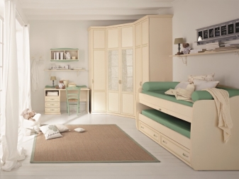 - Надеждност и практичност. Ъгловите модели като тези са доста практични. Те ще се чувстват комфортно в детската стая. Такъв просторен дизайн ще ви помогне да поберете всички необходими дрехи, книги, спално бельо, играчки и други важни предмети..