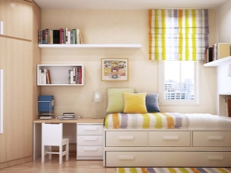 Тази опция ще бъде най -доброто решение за всички родители и техните деца. Такива модели се отличават с впечатляващото си пространство, както и с възможността да скрият всички непотърсени неща, за да не затрупват стаята. Такива мебели ще помогнат и ефективно ще спестят пространството на стаята. Можете да поставите много неща в килера..