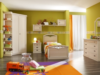 Ако искате по -цветни мебели, след това можете да изберете например жълти, оранжеви, зелени модели. Те ще ви помогнат да добавите яркост и положителност в стаята на вашето бебе, те ще ви заредят само с положителни емоции..