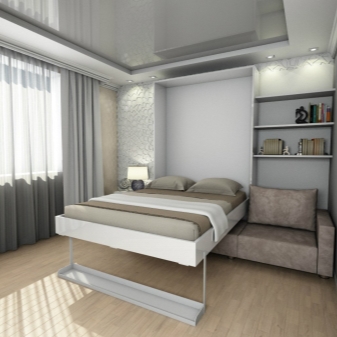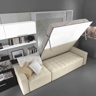 - Двойно легло с ъглово табло. Сгъваемите мебели винаги са привличали вниманието на хората поради своята компактност. Сгъваемото ъглово легло обаче позволява използването на анатомични матраци. Таблата очертава зоната на комфорт, покривайки твърдите стени или позволявайки на собствениците да поставят продукта в центъра на стаята. Изработен е от дърво или по метода на превозното средство..