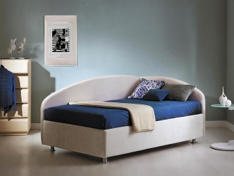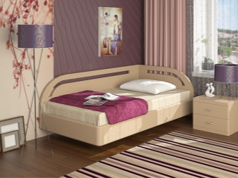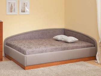 - Кръгло ъглово легло. Формата на 1/4 кръг на мебелите позволява да се монтира само в един ъгъл. Ще бъде удобно един човек да бъде поставен на повърхността му само близо до стената..