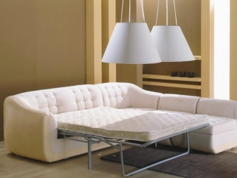 Според прегледите сгъваемите ъглови мебели са в голямо търсене. Той е компактен и не заема много място в сглобеното помещение. Когато собствениците ще спят или оставят гостите за една нощ, единственият атрибут се превръща в удобно двойно легло за спане..