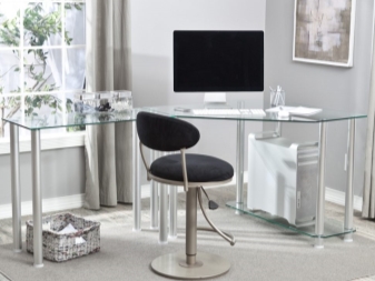 Ъглов модел на компютърна маса от стъкло лесно ще внесе новост във всяка стая, основното е да изберете и инсталирате правилно такива мебели.