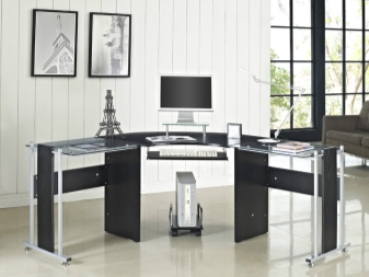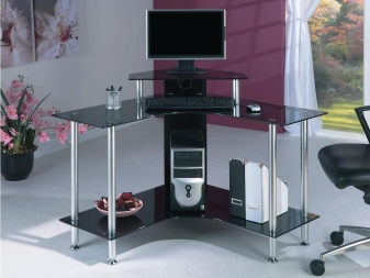 Ъглов модел на компютърна маса от стъкло лесно ще внесе новост във всяка стая, основното е да изберете и инсталирате правилно такива мебели.