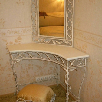 Дамска тоалетка трябва да се вписва в интериора, което означава, че когато правите избор, трябва да обърнете внимание на материала на продукта и цветовата схема. По правило таблиците се правят от следните материали: