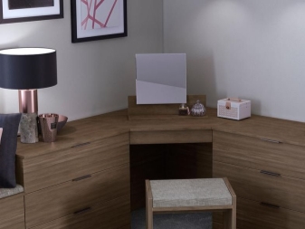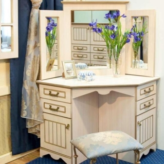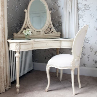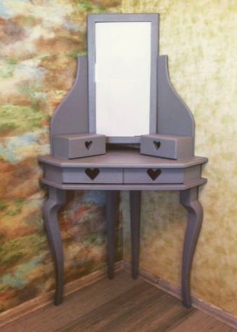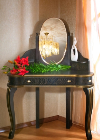 Този елегантен интериорен елемент включва плот за маса, огледало и в зависимост от конфигурацията може да бъде оборудван с рафтове, чекмеджета и различни стойки. Те могат да съхраняват сешоари, маша и други електрически уреди, продукти за грим, бижута, фиби, гребени, с една дума, всичко необходимо на жената за ежедневна грижа за себе си..