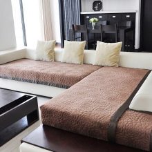 Трябва да се отбележи, че като покривало за диван с рафт или дървен ъгъл или с решетка, одеяло или парче плат, подобно на покривало, е най-подходящо, защото тези елементи в подстриган вид няма да изглеждат много естетически..