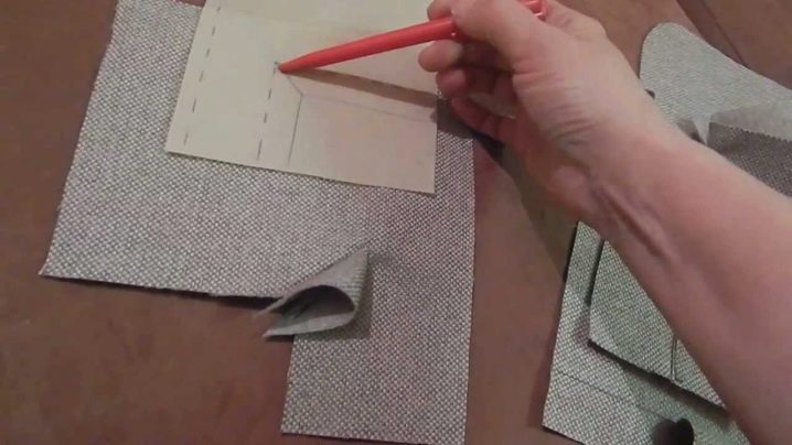 След всички необходими измервания, описани по -рано, е необходимо гладете материала чрез влажна, тънка кърпа. Ако избраният плат е вълнен или памучен, първо трябва да го изперете в топла вода, така че материалът да се свие веднага и продуктът да не стане неизползваем. След всички подготовки тъканта се обръща отвътре навън, трябва да поставите рисунки отгоре и да ги кръгнете по контура. След това, отстъпвайки на 2 см от основната линия, нарисувайте втората и изрежете желаната част от капака по нея. В края на всички описани манипулации можете да започнете да шиете продукта..