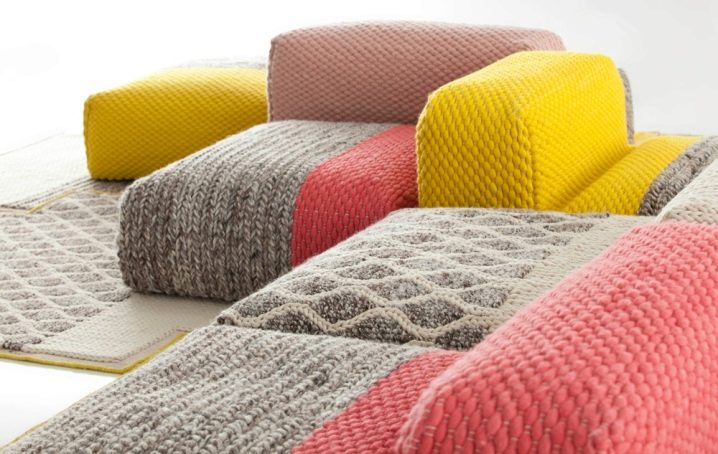 За много търпеливи домакини има и друг вариант за изработка на покривало за ъглов диван – той може да бъде плетен и направен или под формата на няколко квадратни мотива чрез плетене на една кука, или чрез свързване на няколко отделни парчета заедно. Според предишния сценарий ще е необходимо да се направят измервания и да се вземат здрави нишки. Когато избирате влакно, трябва да обърнете внимание на марката, която се прави в магазините – плътността на плетене, като определите коя, можете да изчислите броя на чилетата.