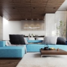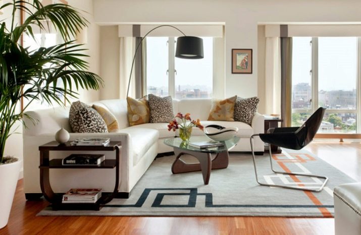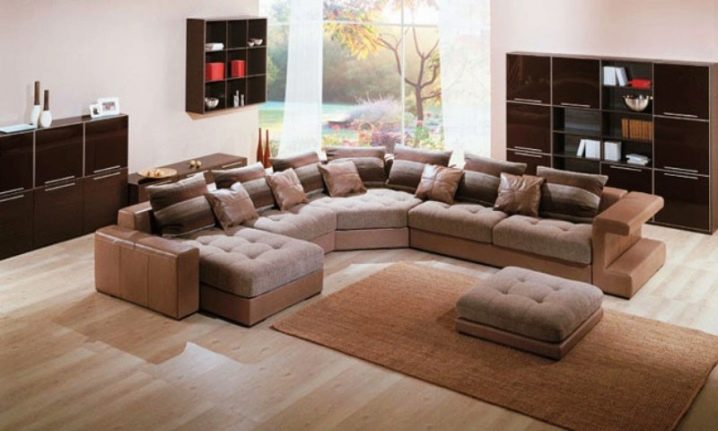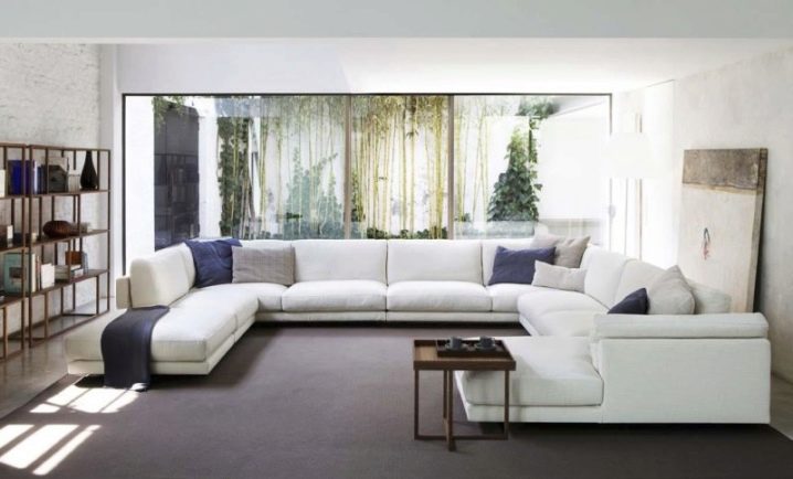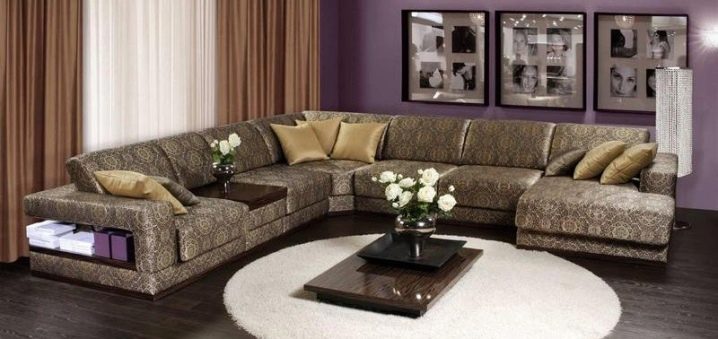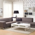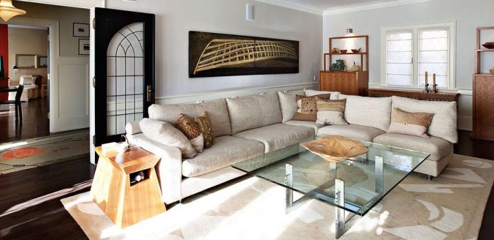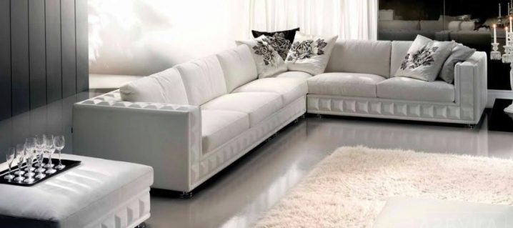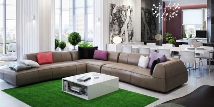 Благодарение на играта на тонове и цветове на големи ъглови дивани, можете да изберете всеки модел, който няма да изглежда тромав, създавайки визуален ефект на претрупване на стаята. Модерен подход към цвета и модела на материала за тапицерия ви позволява да внесете максимална светлина в стаята или да я засенчите, ако е залета от слънцето, за да създадете илюзията за пространство.