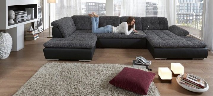 Големите ъглови дивани са не само удобни, както повечето от тези модели, те също са удобни. За разлика от компактния и мини диван, такива размери осигуряват най -комфортната атмосфера и комфорт. Можете да поставите от 3 до 6 души на просторен диван, което е особено важно, когато релаксирате вечер пред телевизионния екран или семейни събирания на настолна игра.