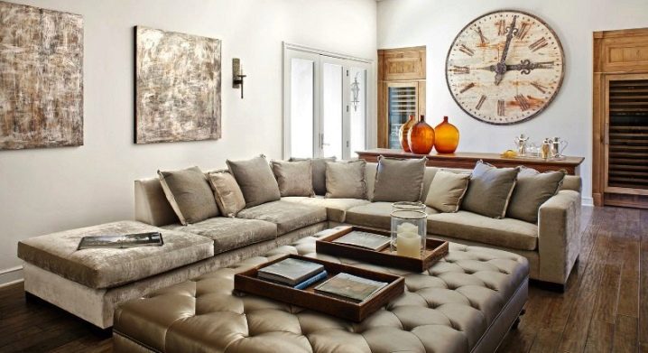 Ъгловите дивани с големи размери могат да се превърнат в интериорна декорация, ненатрапчиво показваща идеята за дизайн: те могат да бъдат независим акцент на избрания стил или неговия нюанс, хармонично свързващи отделни интериорни елементи. Благодарение на добре подбран модел с или без допълнителна функционалност, специална структура на структурата, формата на елементите, те могат да се впишат в почти всеки стил на помещението, от минимализъм и модерен до стил ампир, необарок, арабски теми и блясък.