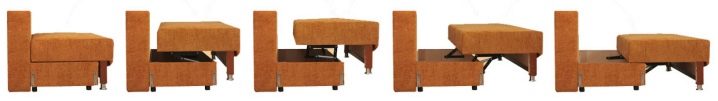 Системите за сгъване и сглобяване на моделите рядко се различават от класическите прави и стандартни малки модели. Трансформирайки се, двете части на дивана са комбинирани в един правоъгълен кът за сядане. Разтегателните механизми са компактни и се движат напред, плъзгащите се системи образуват едно място поради свързването на всички блокове, ако започнете да трансформирате един от тях. Някои модели дивани имат три блокови гънки.