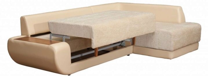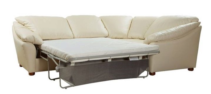 Ъгловото парче на дивана е неразделна част от леглото. Трансформацията на мебелите се състои в разгъване на правия участък, който заедно с ъгловата секция образува зона за спане. Това се отнася за всички механизми, независимо дали става въпрос за метод на разгъване, сгъване или ротационен трансформационен метод..