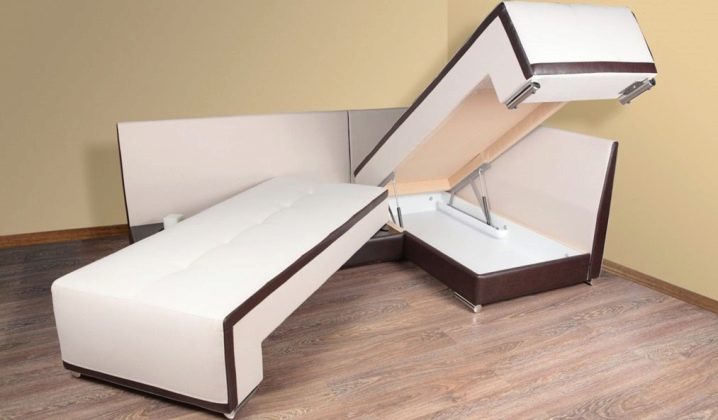 Ъгловите модели са подходящи като селска, гостова и ежедневна опция за обзавеждане. Механизмът за трансформация е удобен, разнообразен и предназначен за продължителна употреба, може да се разточва поради ролки, да се повдига и спуска на пода, да има допълнителни опори за фиксиране или изобщо да няма крака.