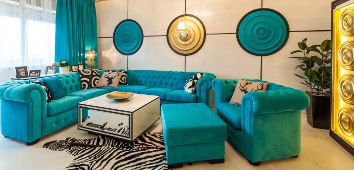 Едноцветното черно е нехармонично днес: наситените тонове изглеждат много по -интересни и оживени в интериора: те могат да бъдат използвани, за да внесат свежи цветове в стила, който няма да създаде депресивни нотки на настроение.