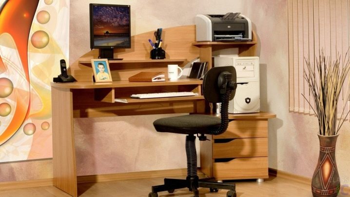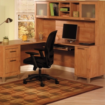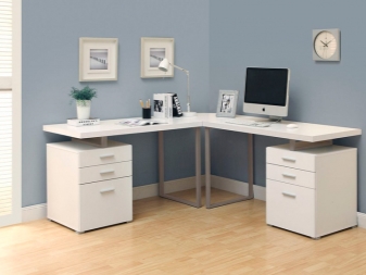 - Стелаж. Обикновено се намират от едната страна на работния плот, но има и двойни модели. Стелажът служи като място за съхранение не само на документи и документи, но и на техническо оборудване..