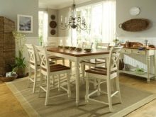 - За стила на Прованс продуктите в бяло, кремаво, светло синьо, розово или пясъчно са идеални. Този стил се отличава с елегантност, лекота и нежност. Погледнете по -отблизо маси с издълбани крака или плотове. Структурата не трябва да бъде прекалено обемиста. Провансалският стил ще бъде украсен с кръгли или овални маси. Най -добре е да се избягват ъгловите конструкции.