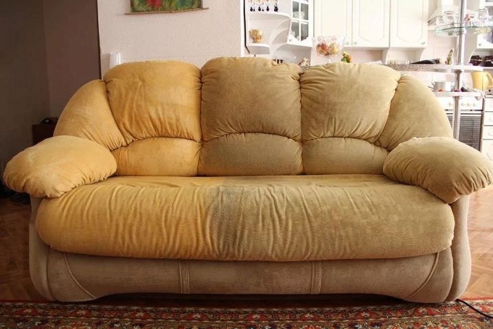 Обикновено за тапицерия на мебели се използва изкуствен велур. Материалът е непретенциозен, издържа добре на химическа и мокра обработка по посока на купчината, нагряване. Тъканта обаче лесно и бързо абсорбира примеси, които проникват дълбоко в плътната структура. Следователно, такава мебелна тапицерия се нуждае от дълбоко почистване. В този случай процесът трябва да се повтори повече от веднъж..