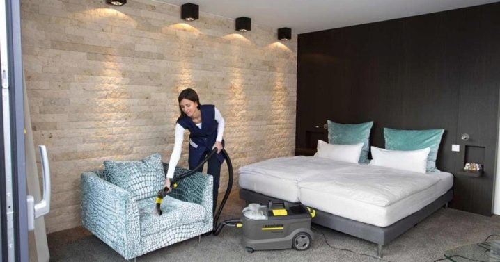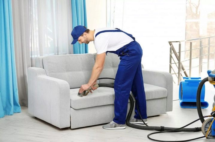Специалистите трябва да носят със себе си специално оборудване. Комплектът включва прахосмукачка с аквафилтри и различни приставки, гъби и четки, параход и други важни аксесоари. Веднъж на място, професионалистите първо оценяват състава на тъканта и степента на замърсяване. Те също така питат собствениците на продуктите за произхода на петна. По -нататъшният план за действие зависи от това. Избират се подходяща почистваща техника, инструменти и препарати.